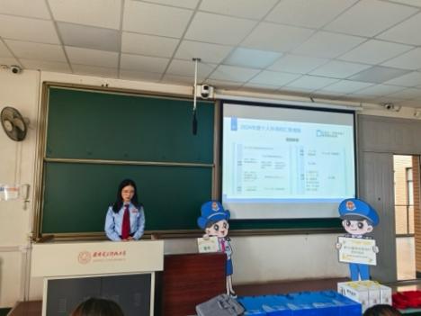 课堂上,西安市第一税务分局税政政管科寇璐璐,向导学团队员工详细讲解税法相关内容。以“个人所得税改革与国家治理现代化”为切入点,将汇算清缴的政策内核拆解为可触可感的现实案例,通过比对年度综合所得与预扣预缴数据,结合老员工勤工助学、实习就业等高频场景,生动诠释了“多退少补”的公平原则。同时引入了数字化税务处理工具“个人所得税APP”,向同学们讲解了作为中国公民,如何利用数字化工具,参与国家税收管理。张蔚虹老师结合智能财税发展现状补充道:“个人所得税APP不仅是便民工具,更是公民参与国家治理的数字接口,是我们参与国家治理的微观实践,每一笔退税补税都在书写着‘取之于民、用之于民’的治理答卷。”同学们摩拳擦掌、迫不及待地想要进行业务实操。