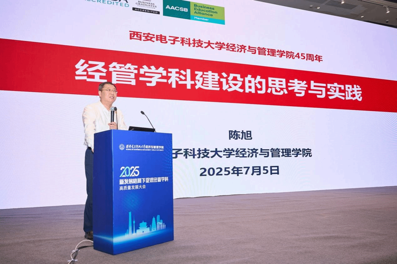 任小龙代表学校对出席大会的各位来宾表示热烈欢迎,对长期以来关心支持西电事业发展的各界朋友表示衷心的感谢。他指出,经管学科承担着观察时代、解读时代、引领时代的重要使命。作为我国改革开放后最早设立管理类学科的院系之一,yl8cc永利官网经过45年的发展,在团队建设、人才培养、科学研究和社会服务等方面取得了显著成绩。站在新的历史起点上,yl8cc永利官网要充分发挥学校电子信息学科优势,紧扣时代脉搏,勇担教育强国使命,以数智赋能学科发展,在支撑中国式现代化的新征程中,作出更大贡献!