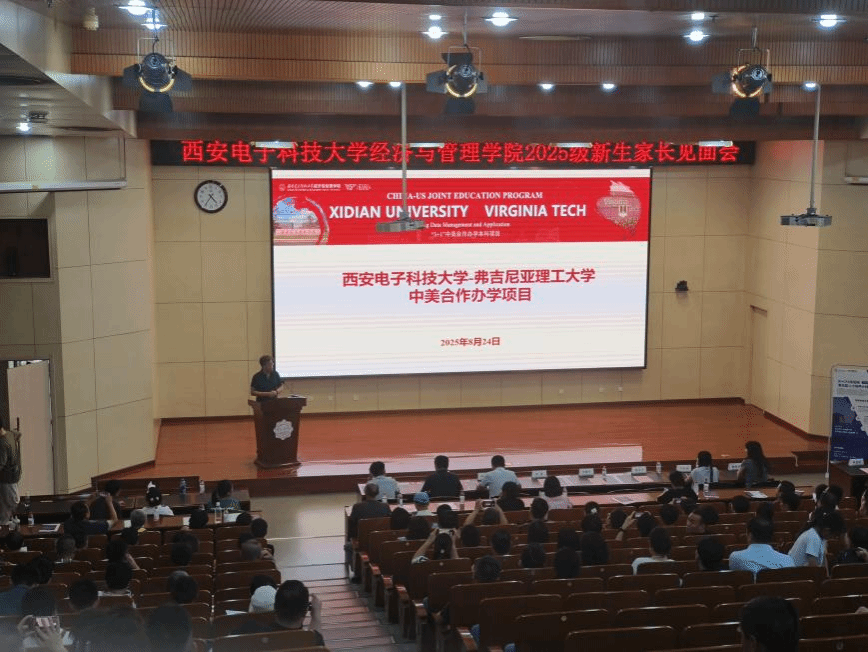 执行经理柴建首先致辞并介绍学院基本情况,他代表学院对远道而来的新生及家长表示热烈的欢迎,并详细介绍了学院的历史沿革、团队建设成果、团队力量、人才培养质量以及近年来在教学和科研方面取得的显著成绩。柴建表示,学院始终坚持以培养具有创新精神和实践能力的高素质经管人才为目标,致力于推动“交叉融合、特色鲜明”的“经管+电子信息”高质量发展路径。他强调,学院在管理科学与工程、工商管理、应用经济学等学科领域具有深厚的学术积淀,拥有多个国家级和省级一流专业建设点。同时,学院积极推进教学改革,注重实践教学和创新创业教育,为员工提供丰富的实践机会和发展空间。柴建还向家长们介绍了学院的人才培养体系,包括课程设置、实践教学环节以及国际化办学举措,让家长们对孩子未来的学习生活有了清晰的了解。