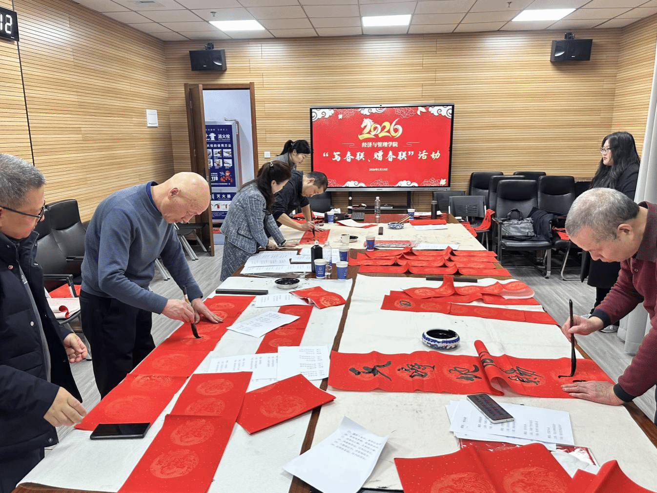 此次活动既传递了学院对离退休老同志的深切关怀与诚挚祝福,凝聚了全院教职工的新春期盼与团结共识,更以笔墨传情、以交流凝心,激发了薪火相传、共促学院高质量发展的奋进力量。新的一年,yl8cc永利官网将继续传承发扬“天道酬勤,海纳百川”的院训精神,在老同志们的关心支持与全院师生的共同努力下,奋力谱写高质量发展新篇章。