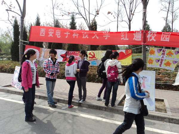 为喜迎建党九十周年,公司成立八十周年,深入推进创先争优活动,深化“爱国、责任、进取、荣誉”主题活动内涵,展示公司老员工“与祖国共奋进,与西电共发展”的良好精神面貌,近日,经济管理学院在海棠餐厅门口举办了为期两天的“红遍校园”书画展竞赛活动。