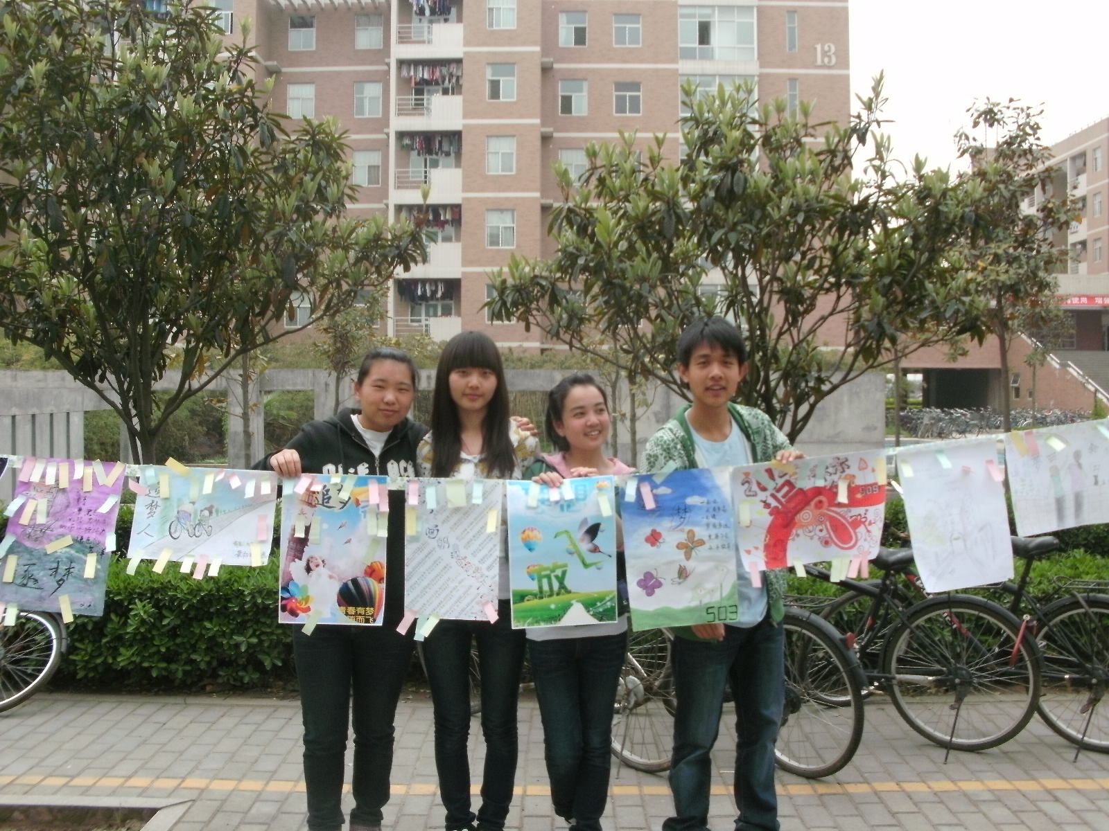 由经济管理理学院员工会主办、宣传部承办的“追梦”创意海报大赛于2012年4月14日在新校区丁香宿舍楼前进行评比选拔。