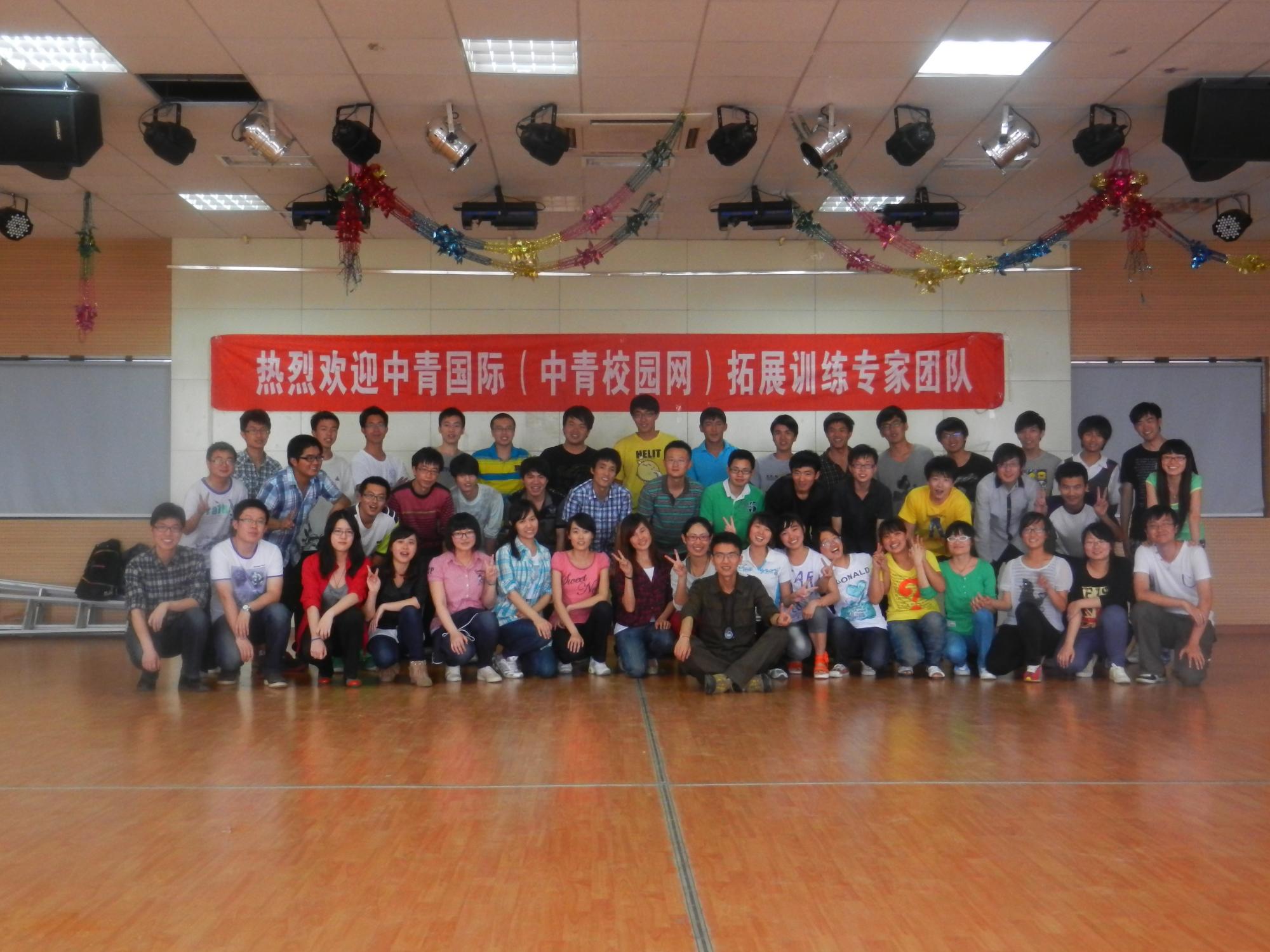 本次活动由中青国际素质拓展刘老师全程指挥,简单的几句暖场话和开放的动作激发起了同学们对此次活动的热情。活动伊始,各位同学还都有些拘谨,通过指导老师精彩的话语和生动的演示,大家的积极性也都被调动了起来。首先通过一个情景模拟,用“洗澡”与“洗枣”这样一个有趣的内容,教会了大家“跳出固定的思维模式”。随后,同学们积极配合老师随机分成4个队,每个小组推选了一名队长,选出了自己的队名,口号,队歌以及队形。然后分别进行了“齐心协力”“火线传递”“五人六足”“金字塔”等5个团队合作,在小组队长的鼓励和带领下,同学们开动脑筋,相互合作,部分小组还运用到了工业工程专业相关知识来解决游戏中的问题,从而缩短了通关时间,最终决出了胜利者“亮剑队”,而失败者“霹雳队”却要接受相应的惩罚。通过本轮游戏,同学们意识到了细节决定成败、团结就是力量、社会的分工不同,做好自己才能发展。最后4个队又合成两个队——红队和黄队进行拍手游戏,看似简单的游戏却蕴含着智慧,每个队员都被动员起来,大胆说出自己的想法,不断的超越自我,不断的超越极限,最好成绩甚至达到了14秒。在最后的队长惩罚中,黄队的队长无法完成160的俯卧撑,全场的所有成员全部自发的替他做完。在那一刻,我们不仅仅是竞争对手,我们还是兄弟,还是姐妹。通过本轮游戏,同学们认识到每个人在团队的重要性、领导者与参与者的责任所在、用发散式思维打破原有的思维定势。