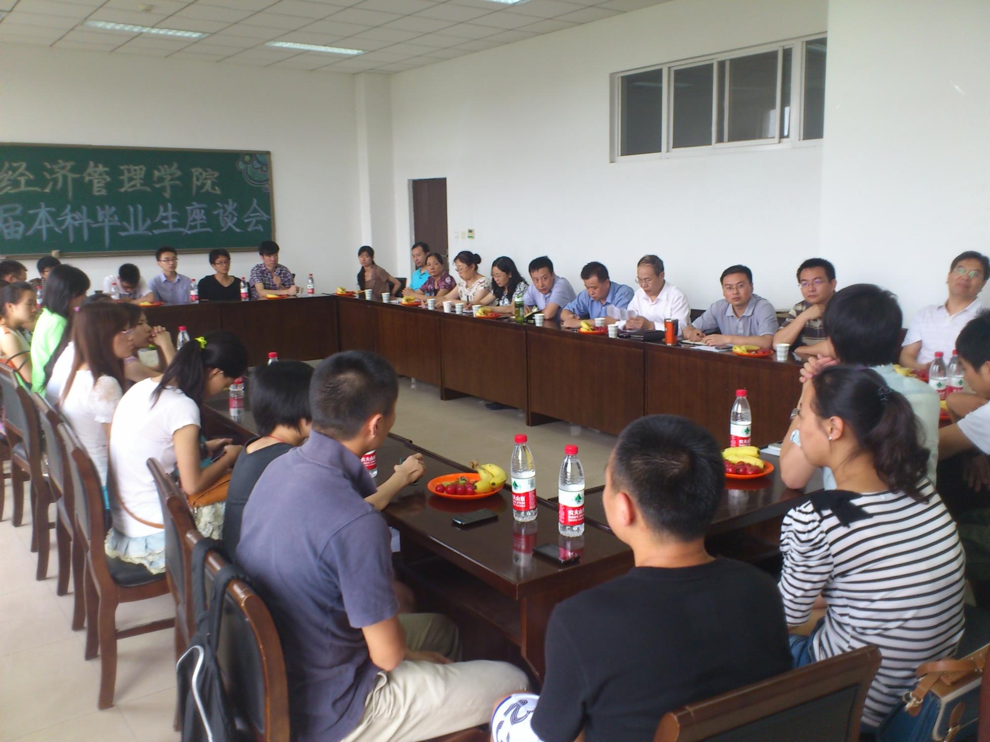 (通讯员 苟琳娜)挥别母校,感恩六月。2012年6月27日下午四点,在南校区信远II区415经济管理学院举办2012届本科毕业生座谈会。公司党委书记王安民,副经理刘东苏,副经理李华,党委副书记李勇强,经理助理赵文平,各系主任、办公室主任、教师代表以及2012届二十余位毕业生代表参加会议。
