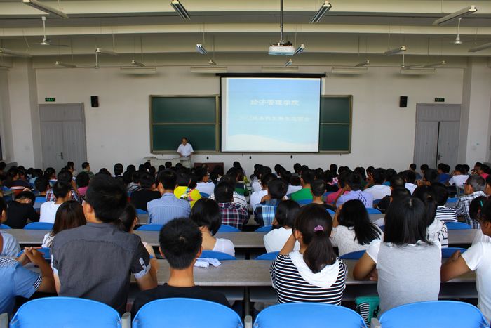 2012年9月14日下午14时,yl8cc永利线路检测中心经济管理学院在南校区B楼437召开2012级经济管理学院的新生见面会,经济管理学院经理赵捧未、党委书记王安民、副经理刘东苏、副经理李华,党委副书记兼副经理李勇强、各系系主任、员工代表以及200余位新生共同参加,会议由办公室主任黄军荣主持。