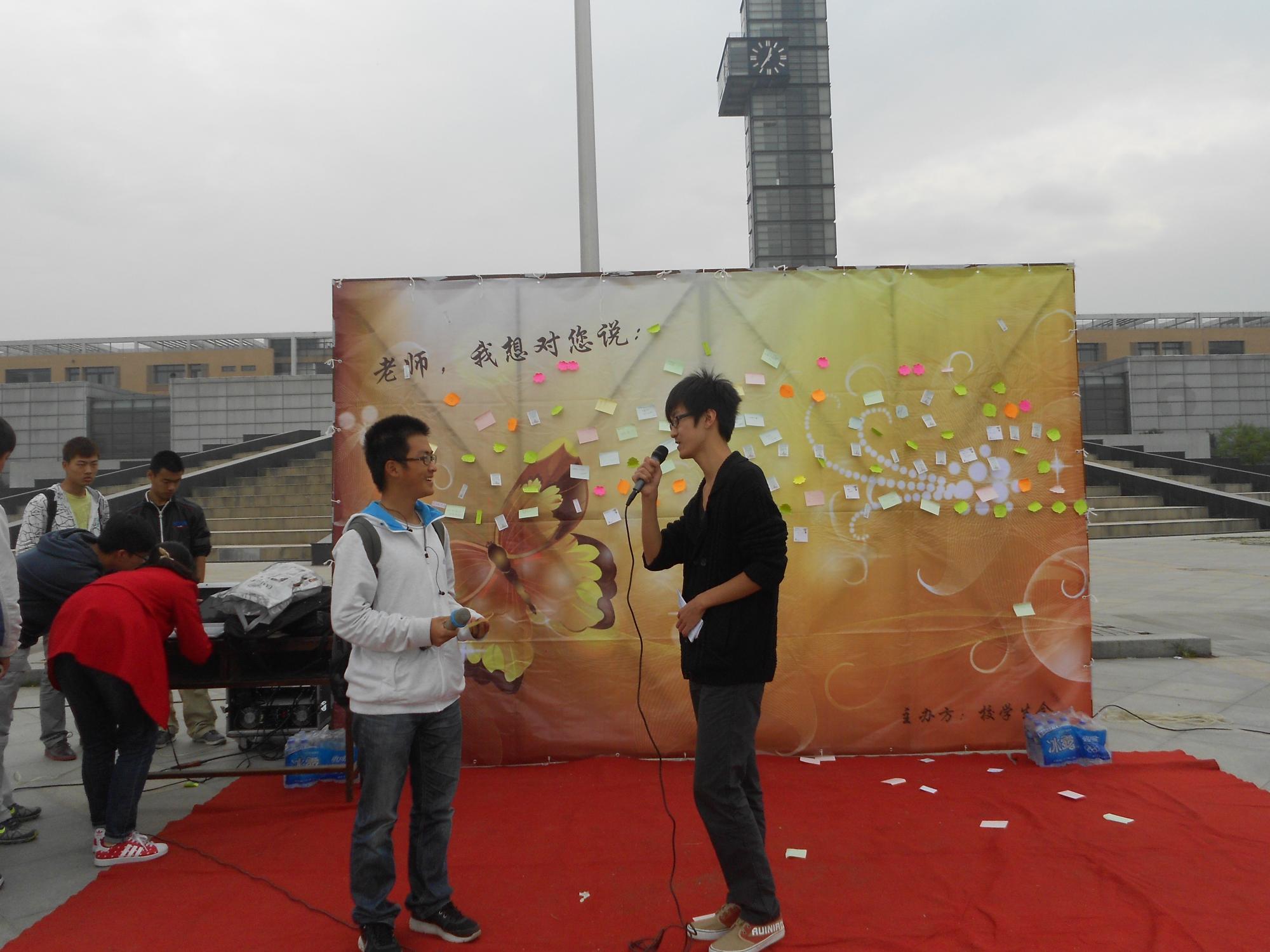 活动现场展示了黄丽娟,刘怀亮,张云涛,张岭等老师的个人简介和照片,整个外场从上午11点持续到下午5点,尽管天气寒冷,依然抵不住现场火热的气氛,期间更有部分老师参与了投票,参与投票的部分同学还填写了对老师想说的话,外场结束后,同学们纷纷表示感谢老师的辛勤培育,更加刻苦学习,不能辜负老师们的心意。