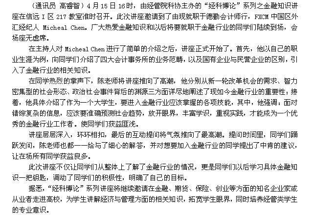 yl8cc永利官网举办“经科博论”系列之金融知识讲座