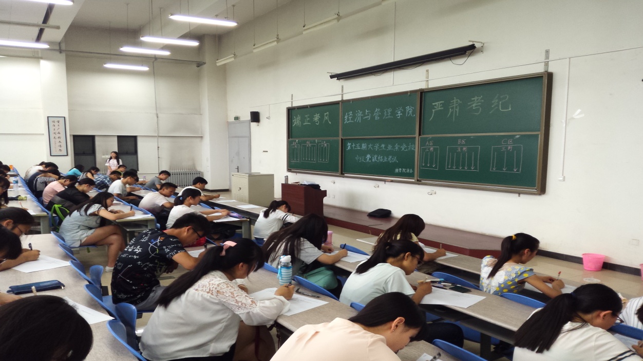 (通讯员:遇萱)经过一周紧张充实课程的学习,新一批老员工入党积极分子于2015年5月17日在B楼537进行中级党课结业考试。此次党课课程及结业考试由yl8cc永利官网团委组织部主办,在部长王雅彤的组织带领和各干事的共同合作下,yl8cc永利官网第十五期老员工业余党校中党课程取得圆满成功。十五期中级党课主要分三讲:樊稳老师的《理想与信念》、王益锋老师的《保持党员先进性》以及刘文博老师的《关于入党与党的基本理论》。党课主题深刻、内容丰富,都给各入党积极分子留下了深刻印象。在此次的中党结业考试中,各成员都怀着无比激动的心情,严肃对待考试过程。在考试的一小时过程中,新一批入党积极分子都认真严谨地完成考试内容,争取向党组织递上一份满意的答卷!