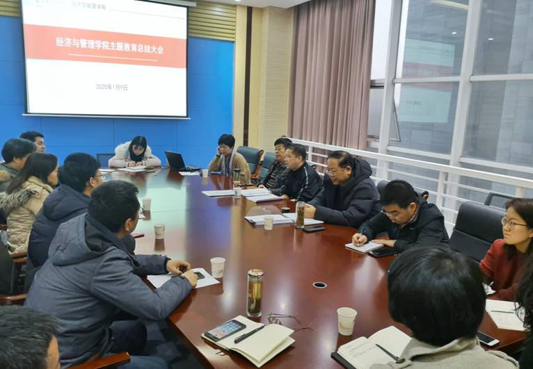 谢军占进行总结发言。他指出学院广大教职工及员工党员干部要以主题教育为新的起点,坚持把“不忘初心、牢记使命”作为加强党的建设的永恒课题和全体党员、干部的终身课题,持续推进“不忘初心、牢记使命”。应充分发扬西电红色基因优良作风,紧扣立德树人根本任务,不断增强教育报国的责任感和使命感。学院应把主题教育的成果转化到学院的发展管理上去,有担当作为和直面问题、正视问题的勇气,在制度完善、学科发展、队伍建设、科研攻关、专业调整、MBA建设发展、员工捐赠上持续发力,充分了解教育部和学校政策,发挥院设委员会智库与民主决策作用,要“走出去”拓宽发展道路,加强内外宣传,助力学院各方面事业长足发展。2020年是学院建院40周年和第五轮学科评估重要契机,学院应提前布局,战略谋划,分工协作,勇于担当,谱写新时代奋进之笔。