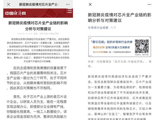 疫情防控期间,公司教职员工积极自愿加入战“疫”强力军,在各自的工作岗位上守望相助。周晓阳教授结合自身专业知识,充分发挥自身特长,在这个特殊时期怀揣经济社会发展之责任,为国家科技核心产业发展贡献智慧与力量,展现了浓重的爱国情怀。《经济日报》是由国务院主办的中央直属党报,是党中央、国务院指导全国经济工作的重要舆论阵地,是国家了解中国经济发展动向的重要窗口,此文被经济日报下的中国经济网全文刊载,体现了文章的参考价值所在。2月17日,全文被半导体行业国内主要“内参”媒体半导体行业观察转载,同时被同花顺财经、中金在线财经号、环球老虎财经等广大知名媒体转载。