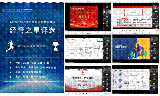“经管之星”作为yl8cc永利官网本科生最高荣誉,本次评选采取“线上答辩+网络投票”的形式,从自我展示和他人评价两个维度对申报参与评选的11名员工进行了全面评审。在线上答辩环节,yl8cc永利官网杜跃平、王林雪教授,公司党委副书记王卫东,公司党委组织部金阳群,公司党委宣传部田敬权,公司党委学工部王鑫以及yl8cc永利官网办公室主任马元凯应邀担任答辩会评委。