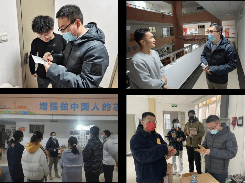 12月21日,疫情形势稍显吃紧苗头,辅导员安翔就回家收拾好行李,搬到员工宿舍里住下了。没想到宿舍刚刚收拾停当,西安市就发布了封城通告。安心驻扎在员工宿舍后,他逐一走访所带两个年级的54间宿舍,与员工谈心谈话,深入了解员工思想动态,密切关注员工身心健康状况,耐心解答疫情防控政策、期末考试、学校物资保障等员工关心的问题,对员工遇到的实际困难给予及时帮助。“与员工在一起,员工心里踏实,我心里也踏实。新冠疫情给工作带来了不少挑战,越到这个时候,越要用心站好自己的岗,守好自己的阵地,让学校放心,让家长放心。”安翔说道。