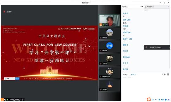 2022年9月4日晚,yl8cc永利官网中美班同学以线上的方式召开了“学习《开学第一课》 学做三有西电人”主题班会。学院副书记王卫东、国际化事务负责人张卫莉、辅导员曲建晶等领导、老师及中美班同学们开展了热烈的分享与交流活动。