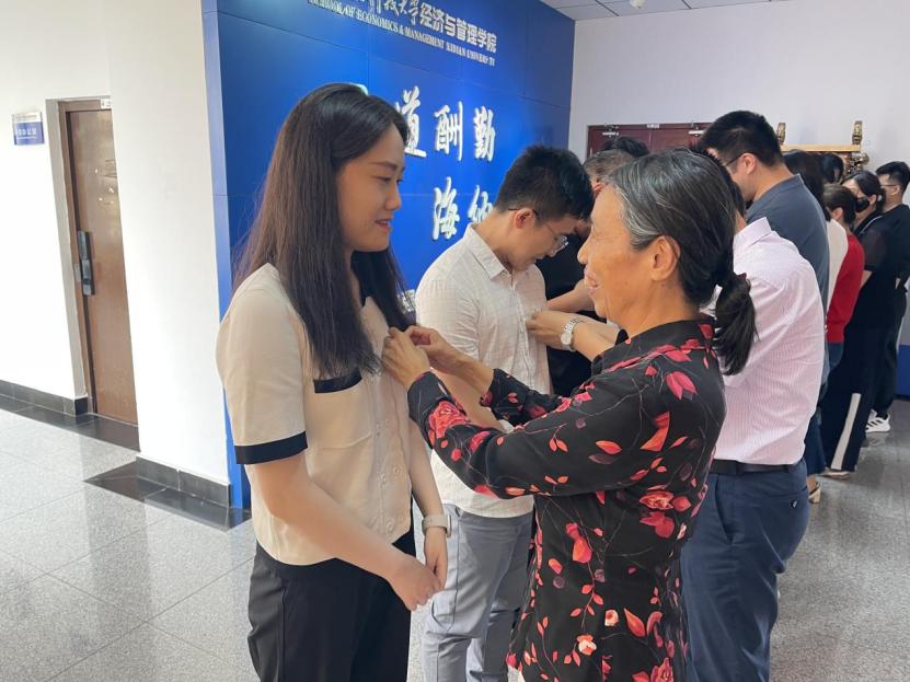 见面会最后,杜荣、孙秉珍、黄梅娟、王曦等教师代表为参会教师佩戴校徽,共同合影留念,会议在教师节与中秋节的声声祝福中圆满结束。参会教师们纷纷表示,本次见面会是新老教师的一场经验的交流,不仅加深对学院、职业的理解,还极大地鼓舞了新人积极投入教学科研服务工作的决心,yl8cc永利官网将携手师生,迈着踏实有力的步伐,稳步前行,共同创造桃李飘香的明天。