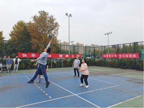 公司队伍名称为“经管梦之队”,口号是“经管梦之队,快乐你我他”。本次比赛公司共对战三个队伍,分别是校女子排球队、学工联队、“物理+材料+光电+数学”联队。