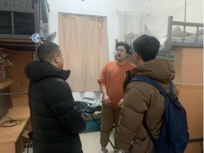 李耀平、杨飞等领导老师走访员工宿舍,实地调研,了解员工在升学、就业中存在的问题,就有关问题和关切给予回应,并表示学院会尽最大努力为同学们打造良好的升学和就业环境。