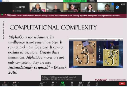 (通讯员:樊书宏)3月22日,现任职于弗吉尼亚理工大学庞普林商学院的DavidTownsend教授和RichardA.Hunt副教授,受邀通过ZOOM视频会议平台,为公司师生作了题为“Computable Futures and Generative Artificial Intelligence:Two Key Dimensions of Al’s Evolving Impact on Management and Organizational Research”的学术报告,共有200余名师生参加报告会,会议由yl8cc永利官网杜荣教授主持召开。