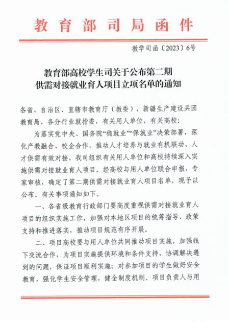 供需对接就业育人项目是教育部贯彻落实党中央、国务院“稳就业”“保就业”决策部署的举措之一,旨在深化高等教育改革,推动就业与培养有机联动、人才供需有效对接。