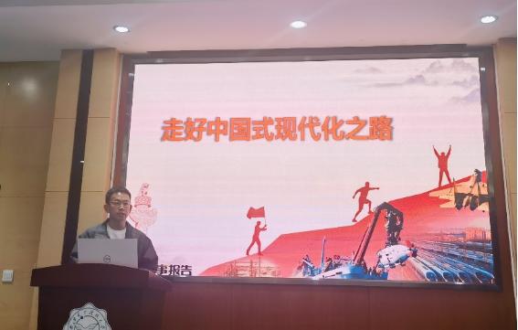 接下来张金树同学进行了以“走好中国式现代化之路”为主题的宣讲。在新中国成立特别是改革开放以来长期探索和实践基础上,经过党的十八大以来在理论和实践上的创新突破,我们党成功推进和拓展了中国式现代化。现代化的漫漫长路,好比一场接力跑,张金树同学在带领大家回顾我们党接续奋斗、推进社会主义现代化建设历程的基础上,讲述了中国式现代化的特征。
