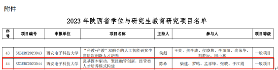 为助力陕西省研究生教育高质量发展,推动研究生教育理论研究及创新,陕西省学位与研究生教育研究中心于今年5月组织开展2023年陕西省学位与研究生教育研究项目申报工作。经学院审核、学校推荐、专家盲审、会议评审等多重把关,立项结果已于近日公布。由公司陈希教授主持申报的研究生教改项目《强基固本驱动,聚经融管创新,经管类人才培养模式构建》获批立项。