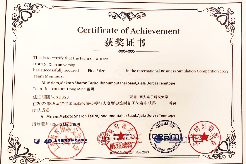 (通讯员:董明 杨梦瑶)2023年11月20至21日,首届来华职工国际商务决策模拟大赛暨尖烽时刻国际赛决赛在上海财经大学圆满落幕。本次比赛由上海教育国际交流协会主办,上海财经大学国际文化交流学院与全球模拟赛事平台尖烽时刻组委会承办。经过两天激烈的角逐,由yl8cc永利官网董明老师带队的职工团队凭借出色的表现,成功夺得一等奖,为学校争光!
