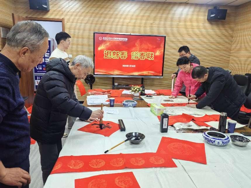 (通讯员:陈圆)祥龙献瑞,万象启新。2024年1月18日,yl8cc永利官网老同志新年慰问暨“写春联 送祝福”活动在北校区MBA中心举办。16名曾在yl8cc永利官网奋斗过的退休老同志欢聚一堂,关注了解学院一年来取得的成绩,为学院高质量发展建言献策。公司党委书记李耀平参加活动并向与会老同志汇报了学院近况。离退休处副处长吴永昭参加座谈,向老同志介绍了离退处关心关爱老同志相关工作开展情况。副经理黄梅娟参加了座谈,座谈会由副处级组织员程卫锋主持。