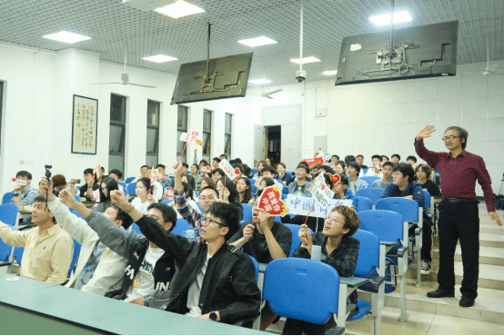 活动的最后,文世龙老师带领在场全体师生共同演唱了英文版《我和我的祖国》,作为对庆祝新中国75周年华诞的献礼,将整节党课的气氛推向高潮。同学们纷纷举起手中的国旗、标语,表达对祖国的深情眷恋与美好祝愿。