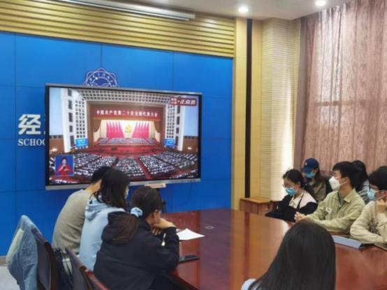 为全面系统地学习二十大精神,2020级本科生通过集体观看、自主学习、党员领学、集体研学等多种形式,促进员工原原本本领悟、系统深入学习,坚定“青春向党、未来无悔”的信念。