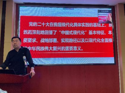夏永林教授在以下方面为同学们做了系统阐述:一,党的二十大召开基本情况和重要意义、二十大报告情况;二,中国式现代化的基本特征和本质要求;三,对“中国式现代化”意义的学习体会。他表示,党的二十大报告明确提出以中国式现代化全面推进中华民族伟大复兴的使命任务,精辟论述了中国式现代化的中国特色、本质要求和重大原则,深刻阐释了中国式现代化的历史渊源、理论逻辑、实践特征和战略部署,大大深化了我们党关于中国式现代化的理论和实践。他强调,中国式现代化成功开创人类现代化的“新版”,既不是简单套用模板也不是西方翻版,在新时代10年的伟大实践中,党明确了全面深化改革总目标,找准了中国式现代化的着力点,即完善和发展中国特色社会主义制度,推进国家治理体系和治理能力现代化,将社会主义现代化的品质提升至新的高度。