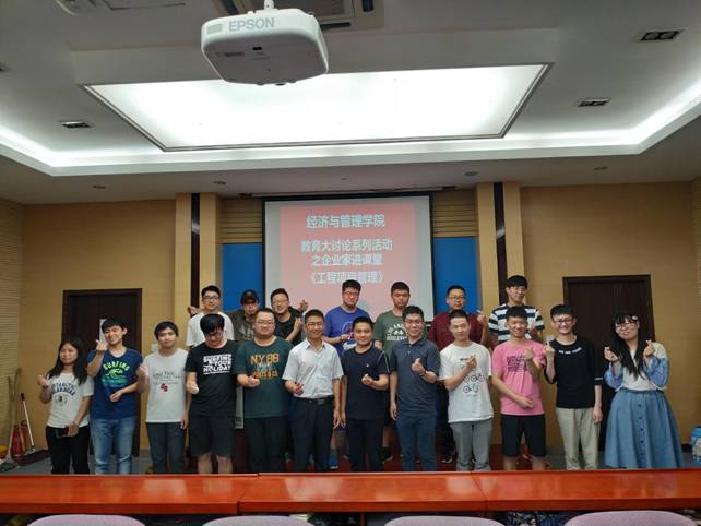在交流讨论环节,学子们积极发言,气氛热烈,纷纷提出自己在学习工程项目管理理论知识时存在的困惑和疑问。如工程管理实务中如何做好投资控制、如何保障工程材料质量、行业的就业前景和薪资待遇等等,张进和刘纯振一一答疑解惑。本次活动给学子提供了一个和行业专家面对面交流讨论的平台,不仅让他们更了解工程项目管理方面的实务知识,也为他们以后的学习与成长指明了方向。
