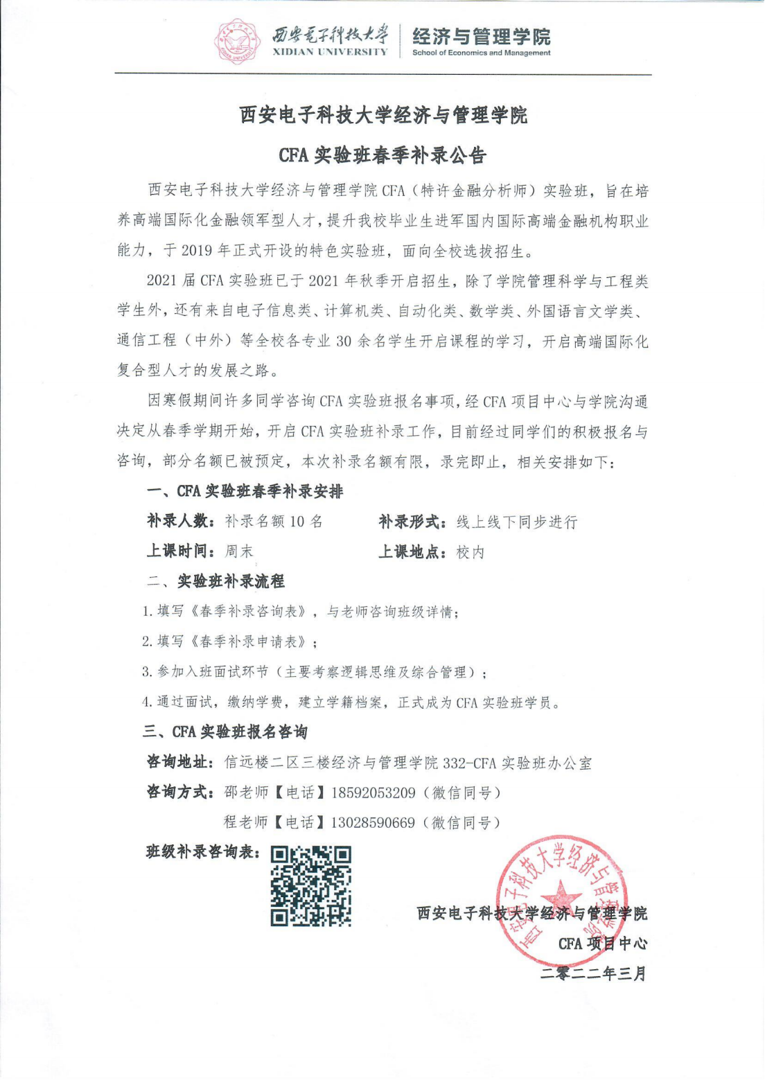 yl8cc永利官网CFA实验班春季补录公告