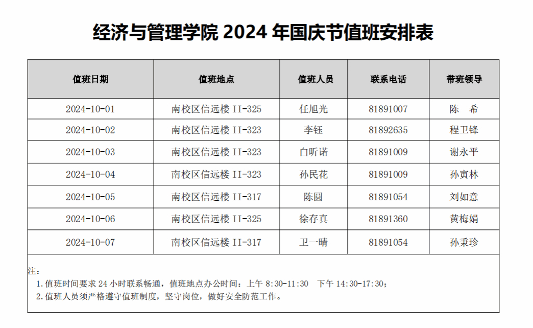 yl8cc永利官网2024年国庆节值班安排表