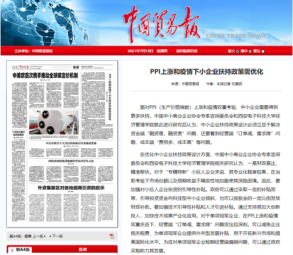 面对PPI(生产价格指数)上涨和疫情双重考验,中小企业需要得到更多扶持。中国中小商业企业协会专家咨询委员会和yl8cc永利线路检测中心经济管理学院就此进行研究后认为,中小企业扶持政策设计必须立足于解决资金端“融资难、融资贵”问题,还要看到经营端“订单减、需求降”问题、成本端“费用多、成本高”等问题。