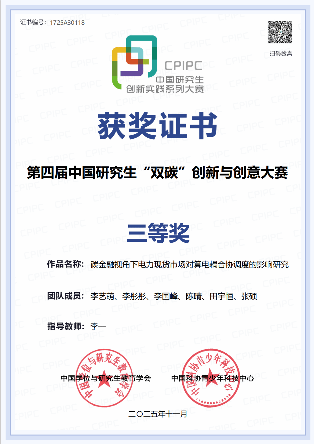(通讯员 罗鸣)近日,在第四届中国研究生“双碳”创新与创意大赛中,由李一老师指导的经管参赛队凭借作品《碳金融视角下电力现货市场对算电耦合协调度的影响研究》在专家命题赛道荣获国家级三等奖,展现了经管学子在“双碳”领域的科研潜力与创新能力。赛事简介:中国研究生“双碳”创新与创意大赛是“中国研究生创新实践系列大赛”主题赛事之一,在教育部学位管理与研究生教育司指导下,由中国学位与研究生教育学会和中国科协青少年科技中心联合主办,...