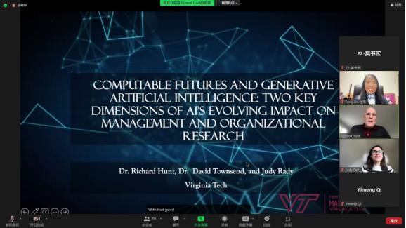 (通讯员:樊书宏)3月22日,现任职于弗吉尼亚理工大学庞普林商学院的DavidTownsend教授和RichardA.Hunt副教授,受邀通过ZOOM视频会议平台,为公司师生作了题为“Computable Futures and Generative Artificial Intelligence:Two Key Dimensions of Al’s Evolving Impact on Management and Organizational Research”的学术报告,共有200余名师生参加报告会,会议由yl8cc永利官网杜荣教授主持召开。Richard A. Hunt副教授作...