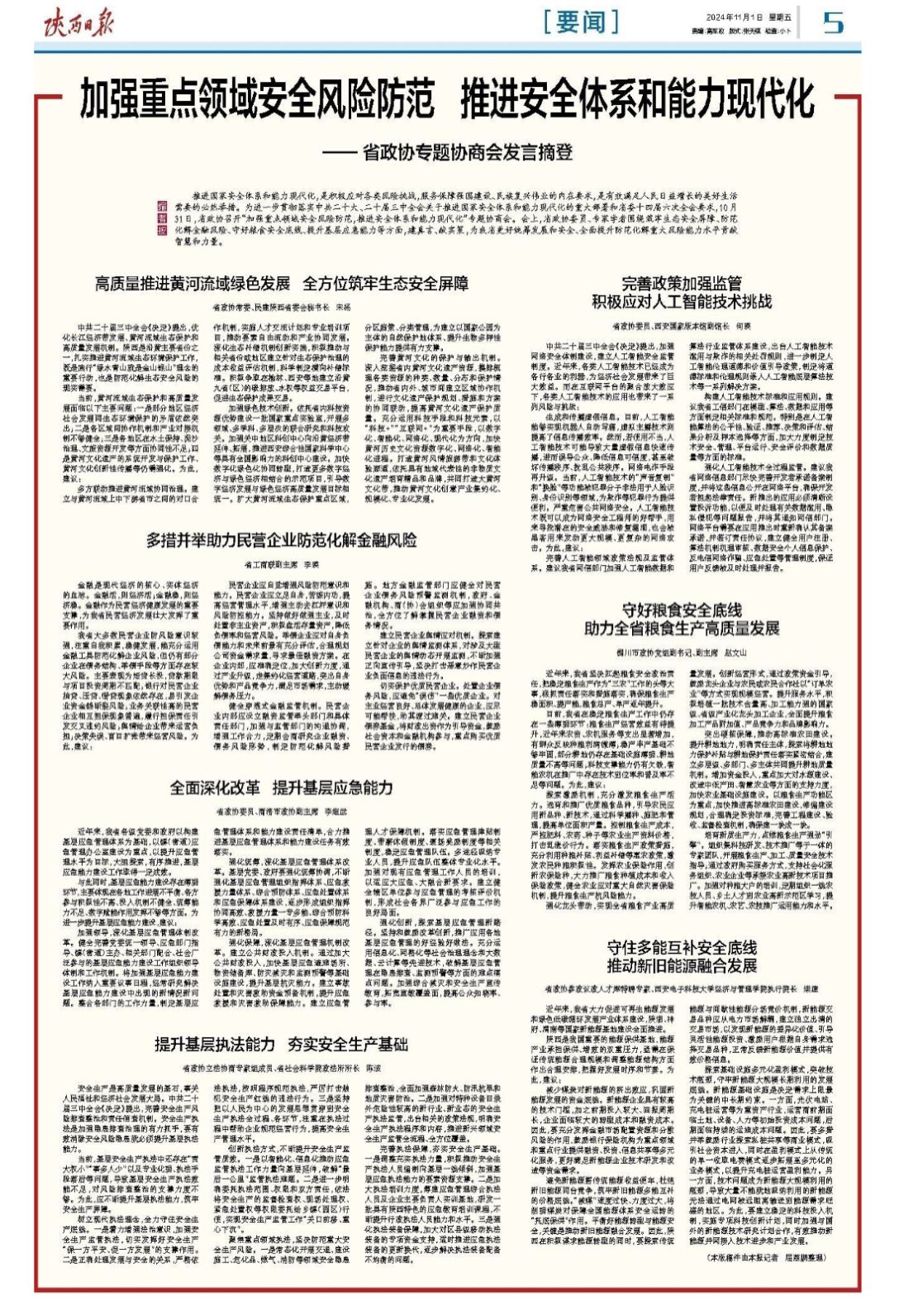 (通讯员 王越)10月31日,陕西省政协召开“加强重点领域安全风险防范,推进安全体系和能力现代化”专题协商会。会上,公司执行经理柴建教授就如何保障能源安全发表看法。柴建教授认为, 陕西省能源生产结构以煤为主,煤炭产业高度集中和资源占用使清洁能源项目在政策支持、融资和市场份额等方面受到限制。他建议,首先要减缓煤炭对新能源的挤出效应,破解项目融资约束,巩固新能源发展的资金底线,着力解决新能源企业建设资金、技术研发和改造资金需求。...